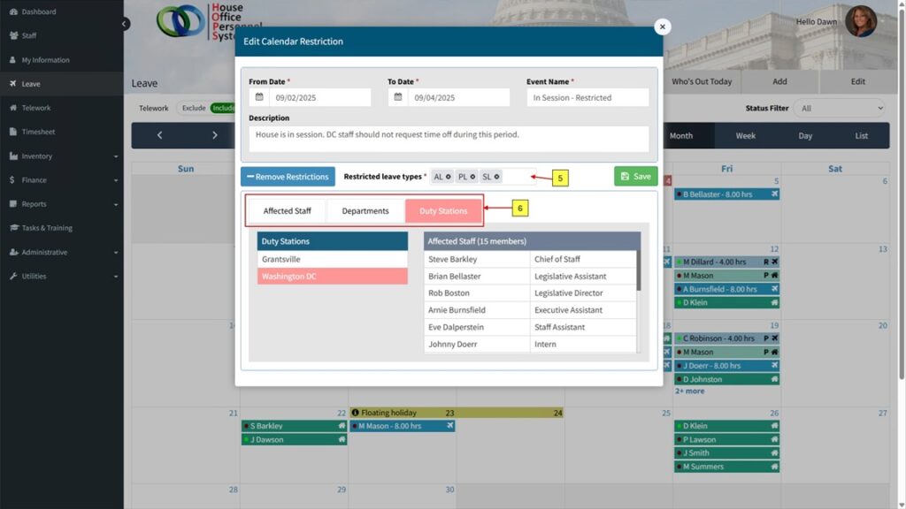 c. Duty Stations – Allows for selection of duty stations/offices that are restricted. Staff who are assigned to the selected offices are restricted from requesting time off.