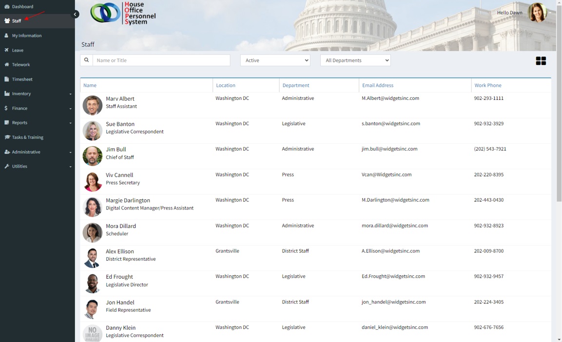 • Department – Indicates what department within the office organizational structure that the staffer belongs to.